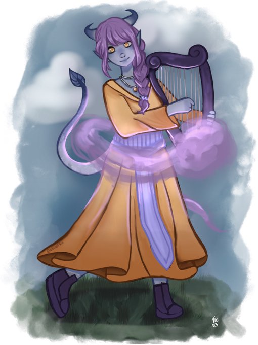 Character illustration of a tiefling bard!! I absolutely loved making this and designing the character #dndart #commissions