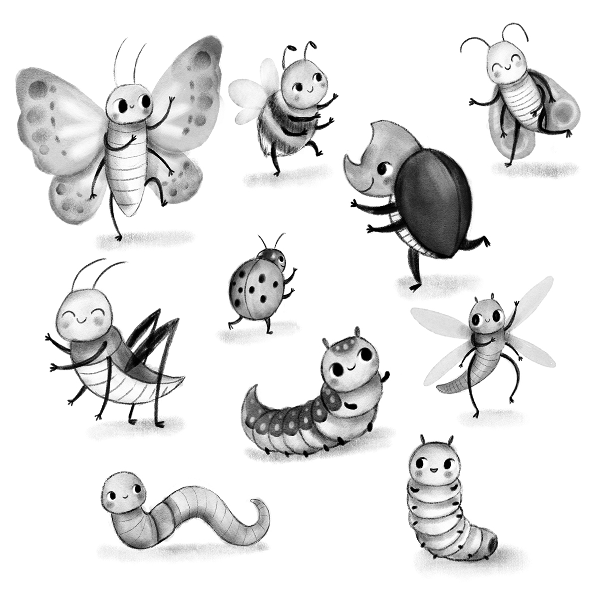 I've been pretty silent on here recently due to illness, but I'm back at my desk today and working on some super cute bugs to get back into the swing of things! #InsectWeek #illustration #kidlitart