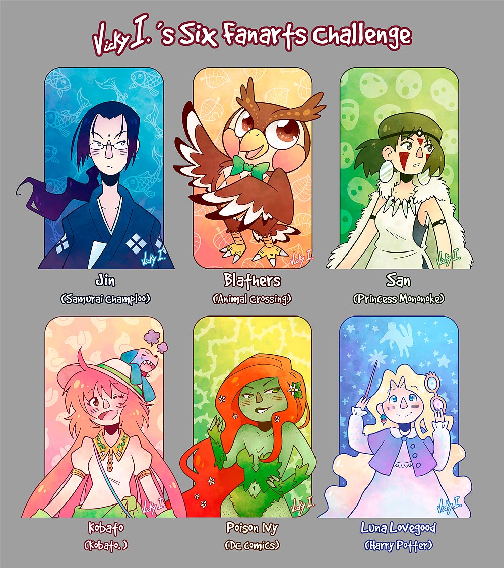 Aaaaand that's it! ✨ I had tons of fun drawing every single character 🥰 Check down below to see each fanart in bigger size! 👇👇👇 #SixFanarts #SixFanartsChallenge #sixcharacters #Sixcharacterschallenge #artchallenge