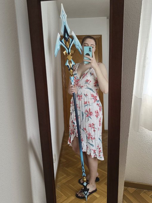 ¡He acabado por fin mi Pacificadora del Desastre hecha a mano para mi cosplay de Shenhe! ¿Qué os parece? ¡Yo estoy bastante contenta! ❄️❄️❄️ I finished my handmade Calamity Queller for my Shenhe cosplay! What do you think? I'm pretty happy! #GenshinImpact #Shenhe #cosplay