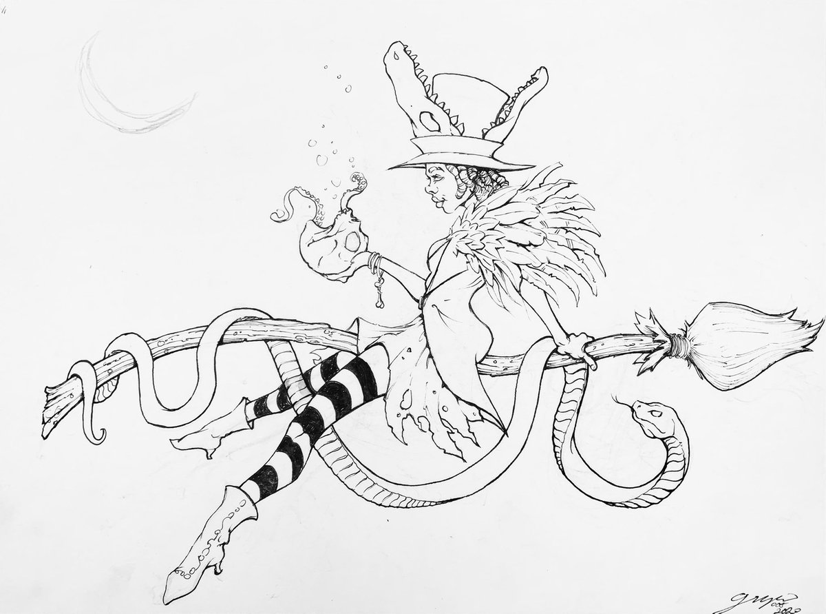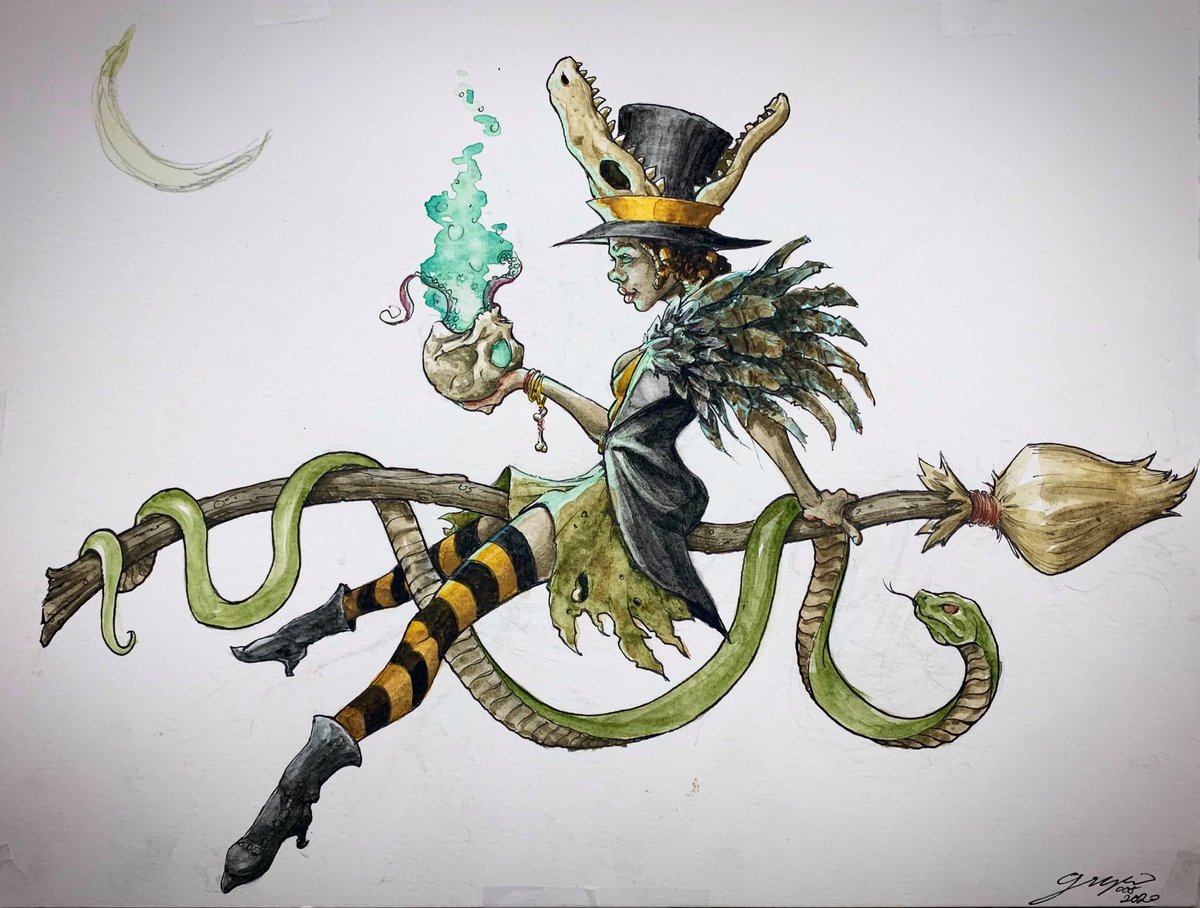 Went from #inktober to #brushtober on this voodoo witch. Having some fun for Halloween 👻. #draw #drawing #witch #watercolor