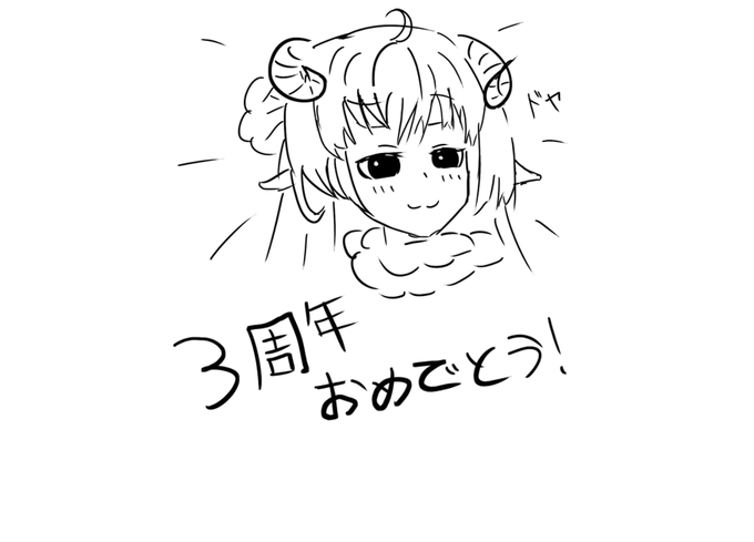 わためええおめでとううう!! お描きと日本語練習はがんばります💪🐏 #つのまきあーと #角巻わため3周年