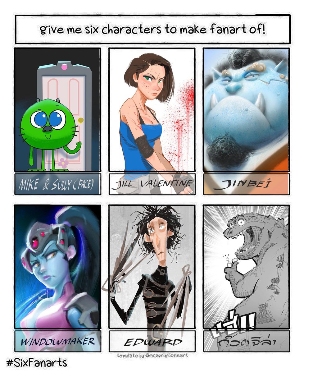Six fanarts random style / no picked ,used the first 6 suggestions and it a lot of fun!! ^^ hope you enjoy #SixFanarts