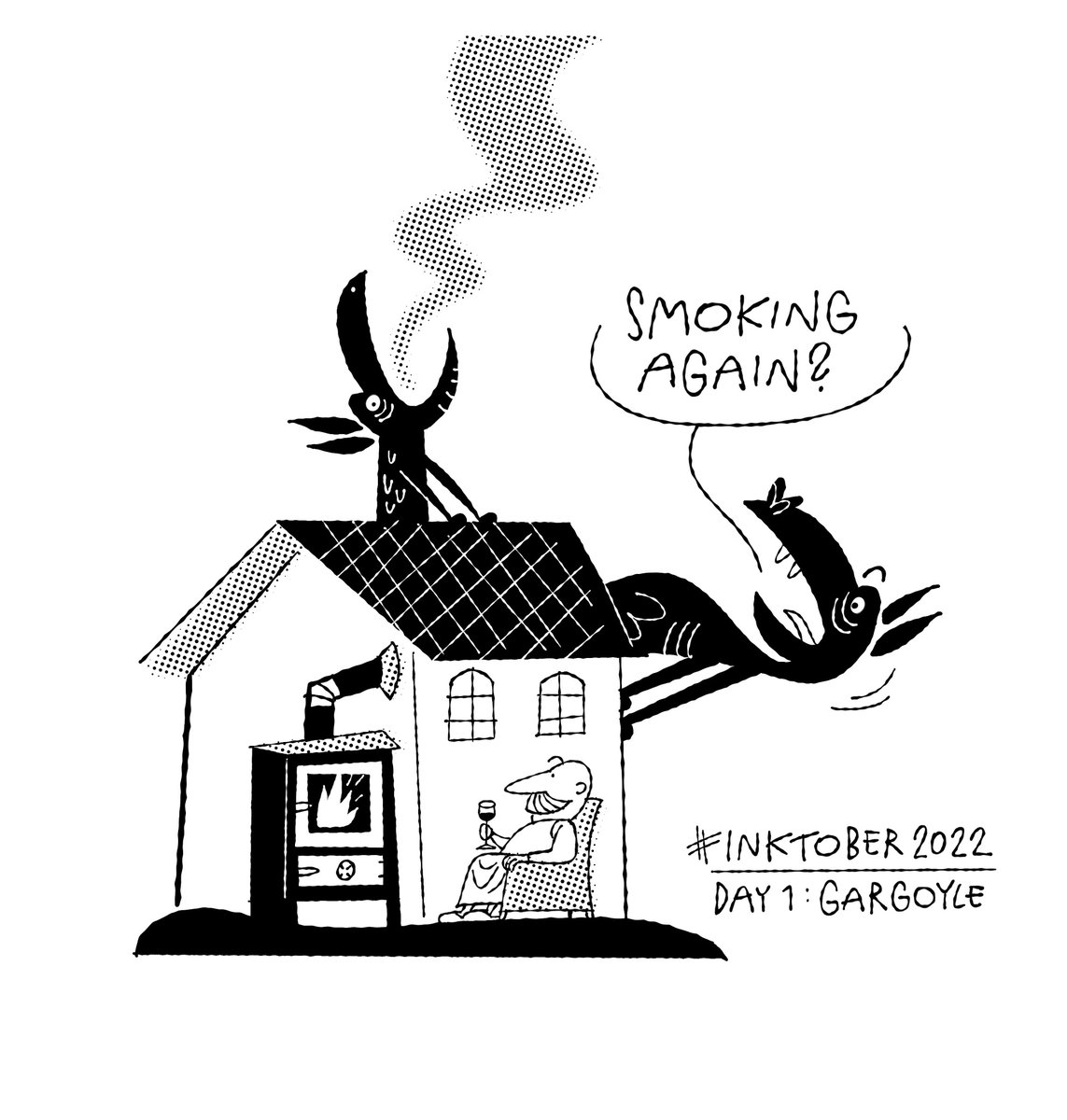 Inktober se rozjíždí. Den první. Chrlič dešťové vody ve tvaru fantastického zvířete čili gargoyle. #Inktober #inktober2022 #gargoyle