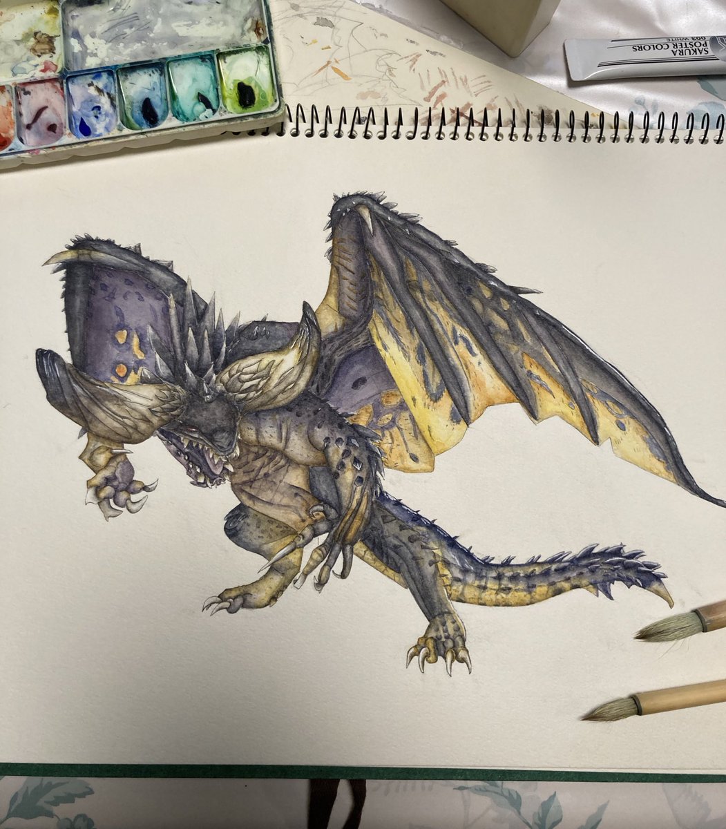 イヴェルカーナ描いたから見て😊 #水彩画 #Velkhana