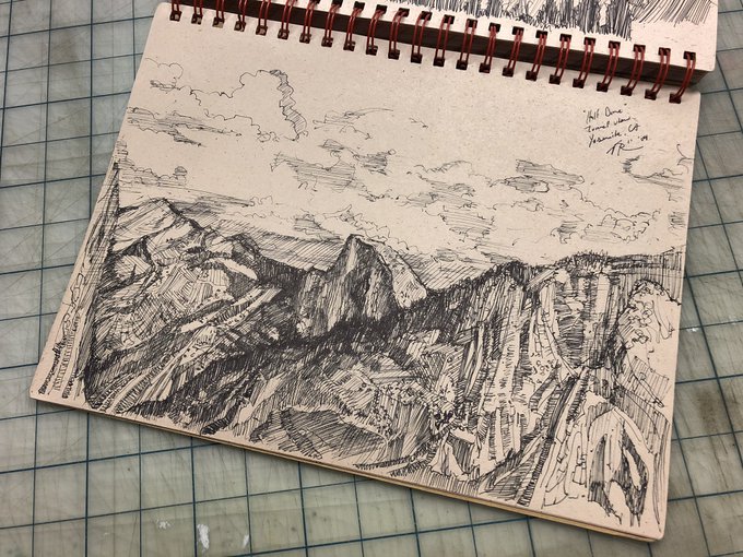 Day 7 of #Inktober. ‘Half Dome’ Tunnel View - Yosemite National Park, CA. 2004. #Travel #Destination #Art #Yosemite #HalfDome #Drawing #Sketchbook
