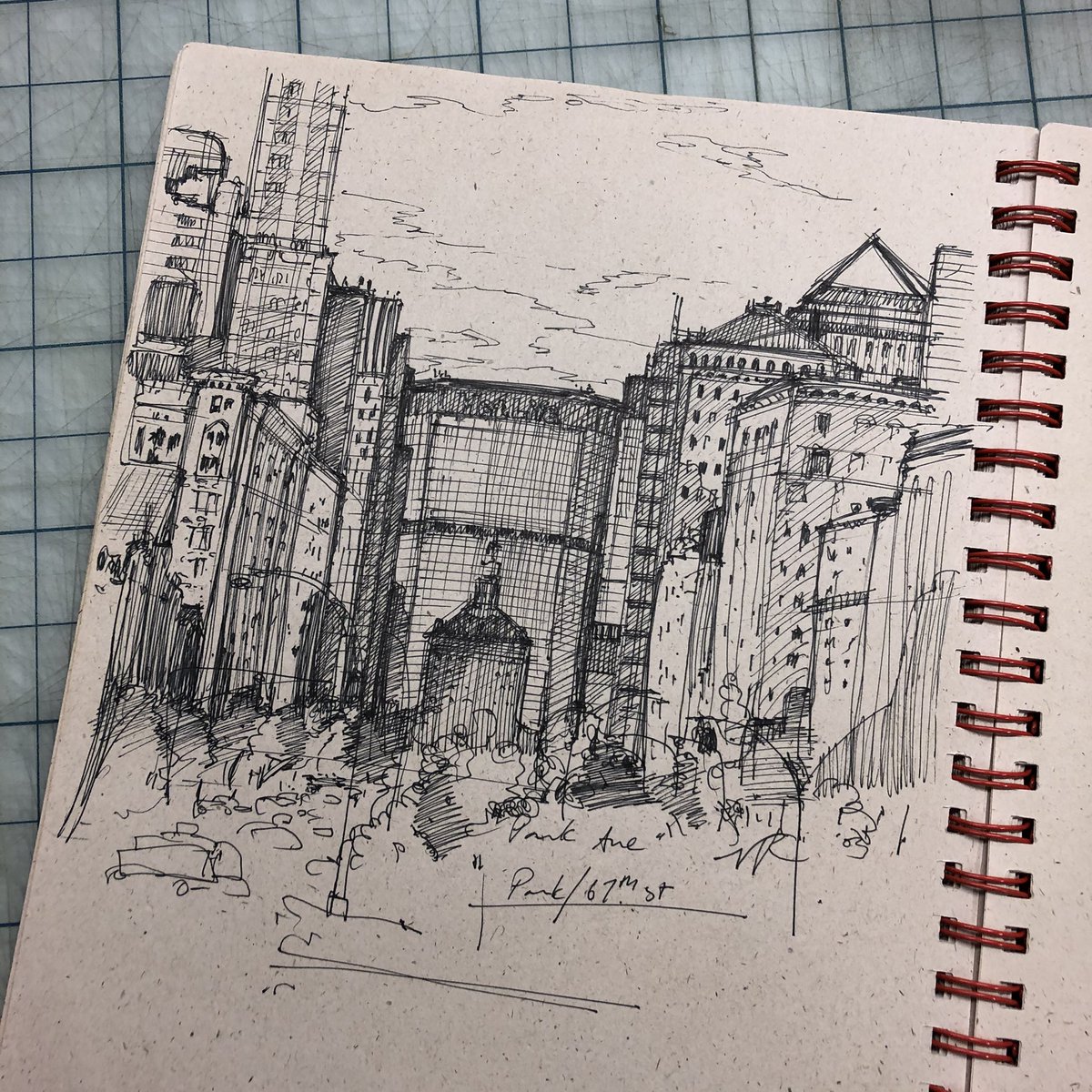 Day 22 of #Inktober. ‘Park Ave/67th St.’ - Manhattan, NY. 2003. #Travel #Destination #Art #Manhattan #NY #NewYorkCity #MetLifeBuilding #ParkAve #UpperEastSide #Sketch #Sketchbook