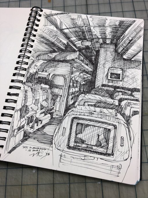 DAY 1 of #Inktober. KLM Royal Dutch Airlines. 1998. I wasn’t a big reader so drawing on a flight was a great way to make the time fly (no pun intended). This was one of the earliest sketches that started it all. #Travel #Destination #Art #Sketchbook