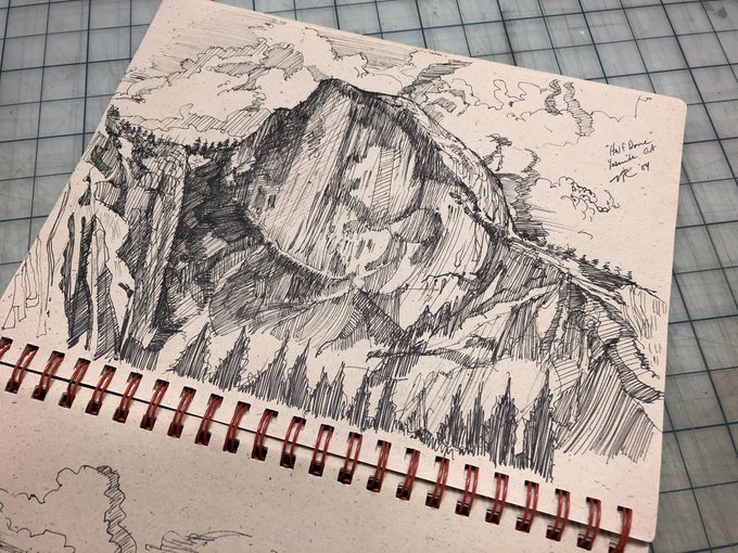 Day 11 of #Inktober. ‘Half Dome’. In focus. Yosemite National Park, CA. 2004. #Travel #Art #Destination #HalfDome #Yosemite #Sketchbook