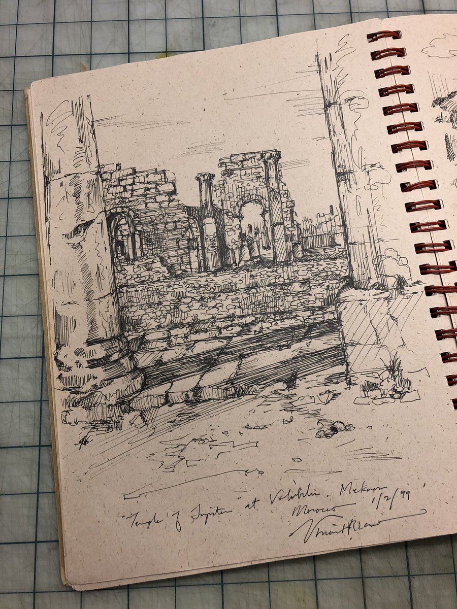 Day 15 of #Inktober. ‘Temple of Jupiter’ - Volubilis, Meknes. Morocco. 1999. #Travel #Destination #Art #Morocco #Volubilis #Drawing #Sketchbook