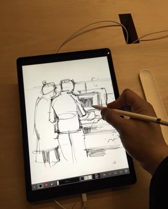 #OTD 2016. At the Apple store in Grand Central Station testing & digitally drawing customers testing other products. #GCT #iPad #Digital #Illustration #OnThisDate