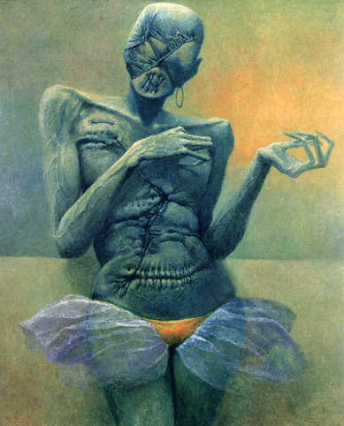 Good morning ❤🌞 Untitled 1969 by Beksinski on the left. One of the most beautiful contemporary paintings I've ever seen. And my clay tribute to the artwork on the right. Have a wonderfully creative Thursday, everyone 😘 #NFTs #NFTCommunity #NFTartists #ArtistOnTwitter