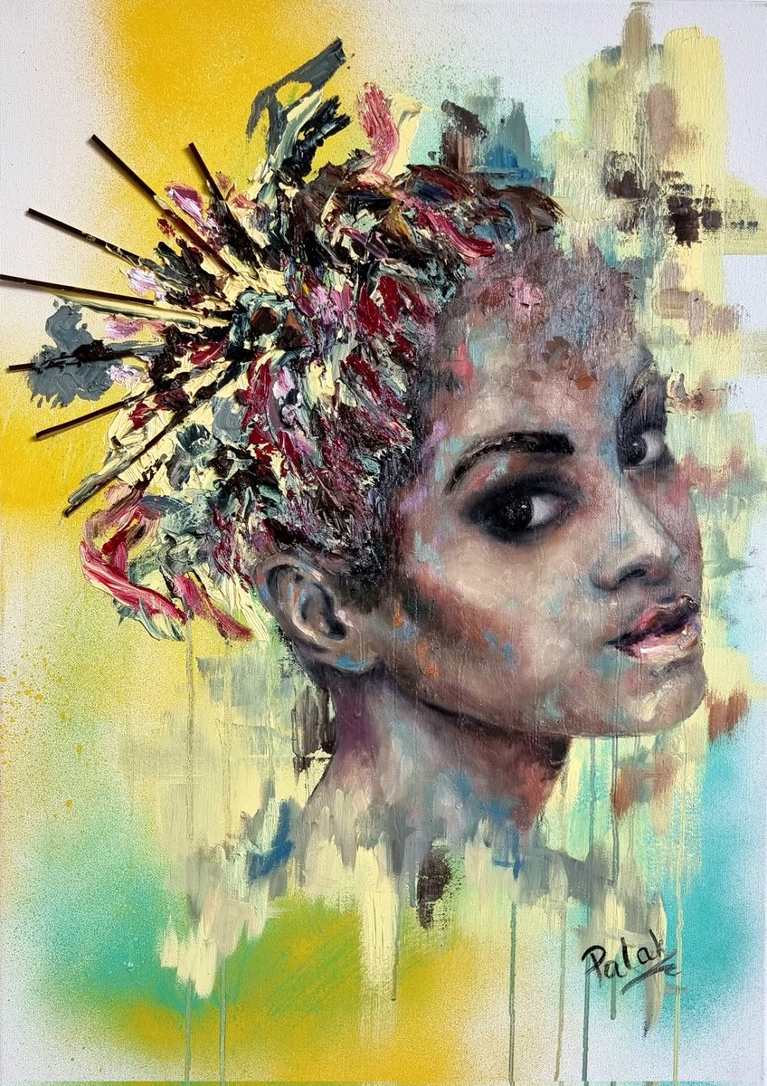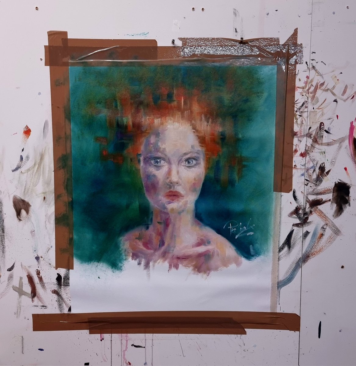 Today, I've decided to cleanse my palette and do something just for pure fun. No projects, no pressure, no limits. Very soothing and messy as I am covered in every one of those colours 😂 #oilpainting #artistsontwitter #portrait #painting #NFTCommunity