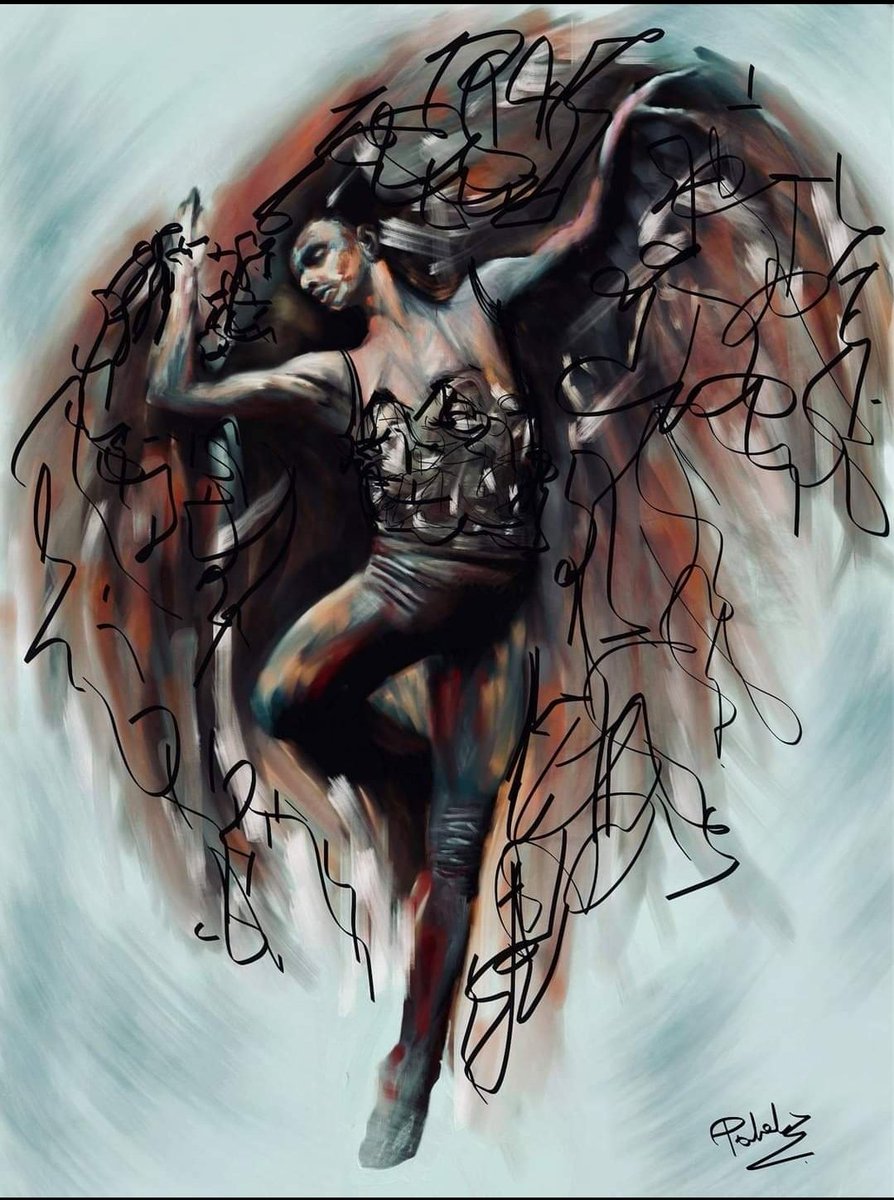 Good morning, Twitterversians 🌞 One of my older paintings, "Dance or die" of Rudolf Nureyev, a man living & breathing dance. Today's mood: Paint or die 😘❤ Have a fab Tuesday, everyone! #ArtistOnTwitter #NFT #NFTcommunitiy