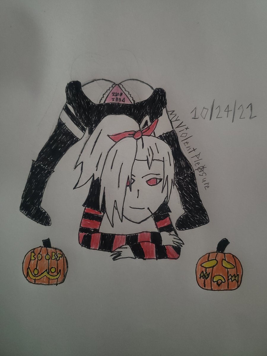 🎶Bon Fires burning bright FeFe showing her moon everynight i remember Halloween🎵 Day 24 of inktober I drew @CovfefeChan jacko posing with Jacko Lanterns Exposing a pair of pantsu. ;) #FeFeArt #inktober2022day24 #inktober22