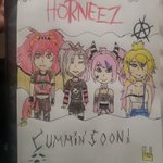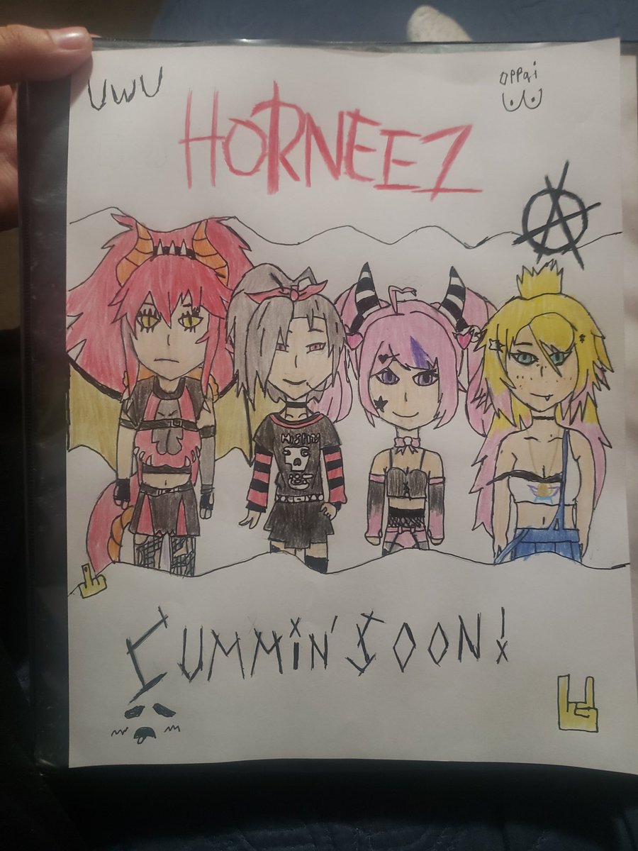 Don't miss the new band Horneez with @CovfefeChan (bass) @ironmouse (Vocals) @obkatiekat (Guitar) & @zentreya (drums) Cummin at a city near you, don't miss their hit singles Fefe's new BF, their cover of anglefuck by the misfits & more B there!🤘#ironmouseart #FeFeArt #zentreart