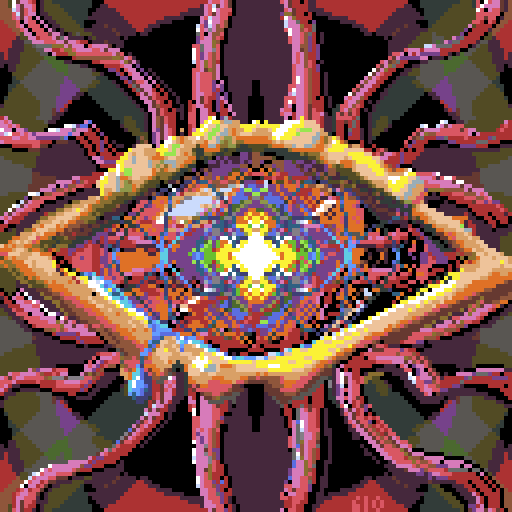 Haven't posted much art, due to persistent wrist injuries, but some Fydo Tiles I made a few months ago have been revealed! Ponder that orb~ (Speedpaint in replies) #pixelart#ドット絵