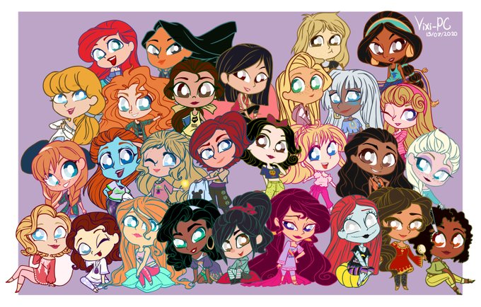 #disneyprincess #fanart #Disney Dibuje 28 princesas Disney en mi estilo chibi chibi.