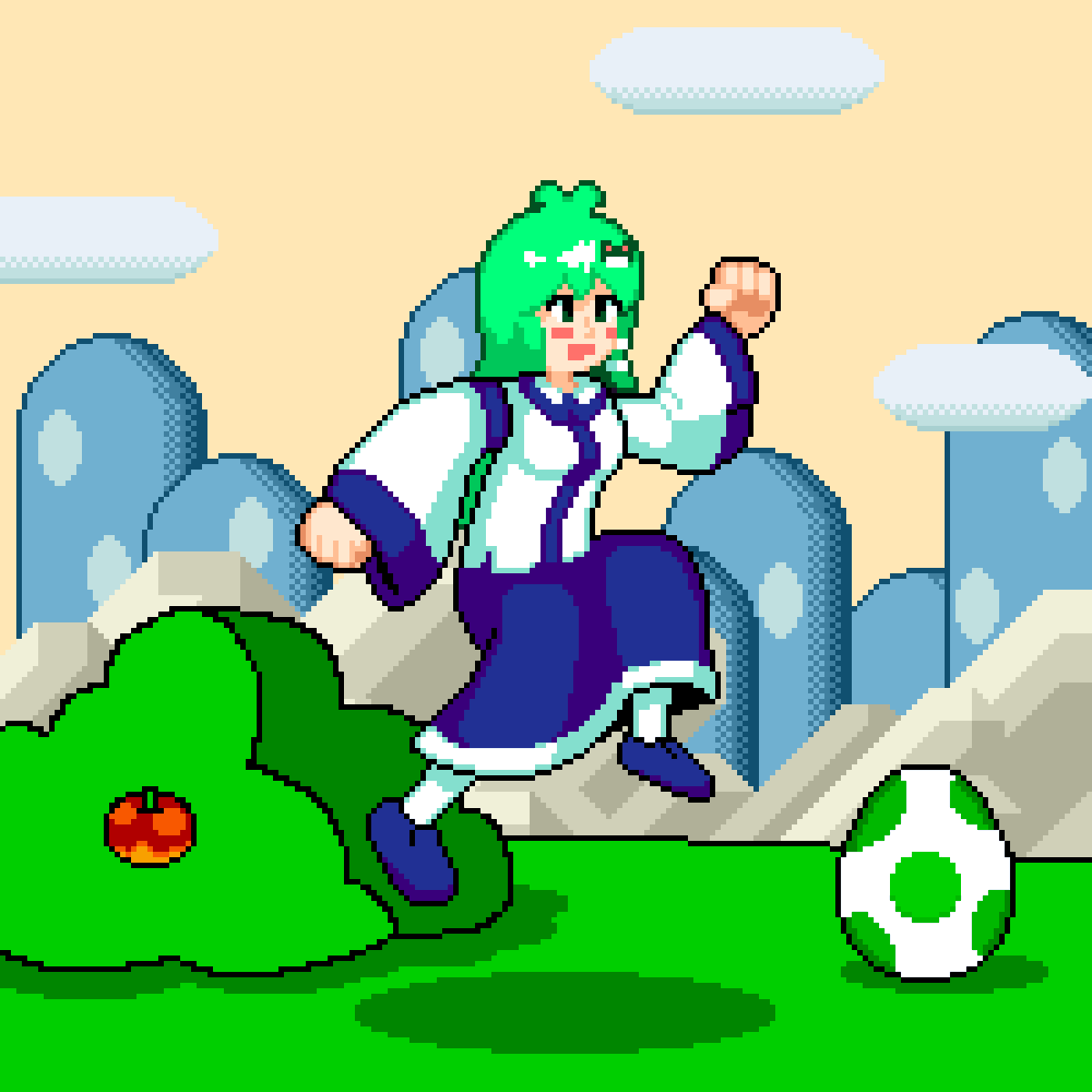 Super Sanae World (Based on @fds_ty romhack) #pixelart #東方Project #touhouproject