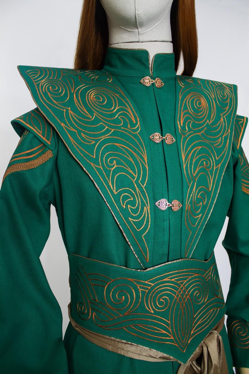 lt’s just debut of my new design of #cosplay costume of Elf King Thranduil in a stunning green color with copper embroidery! This version is a unique take on the classic look. #LOTR#Thranduil#ElvenKing#CosplayCostume"
