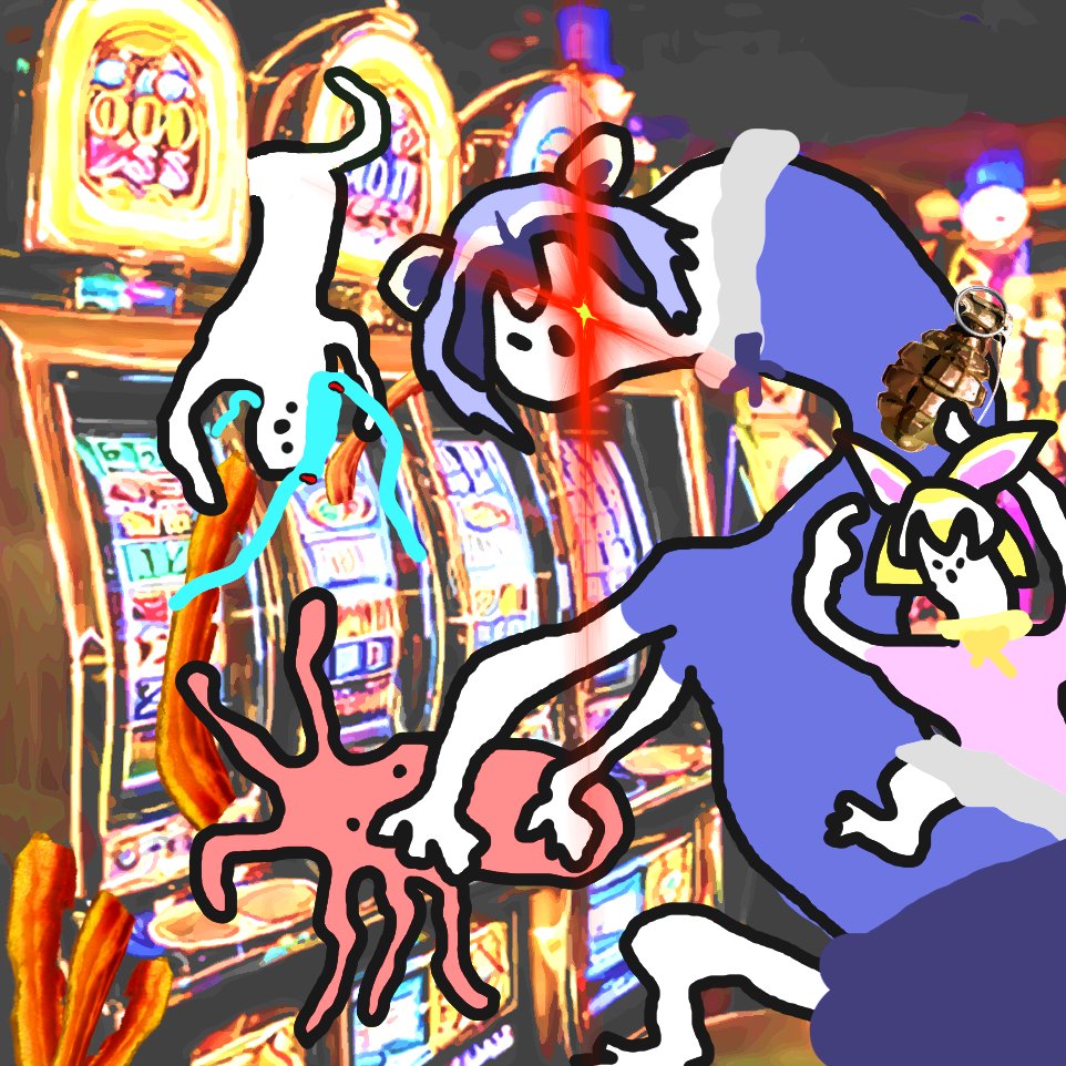 タコを賭けてスロットをしてたら、店主の初音ミクがベーコンで遠隔しているのを目撃するアライさん Alai-san plays slots with an octopus as a wager, discovers that the owner "Hatsune Miku" is cheating with bacon.
