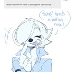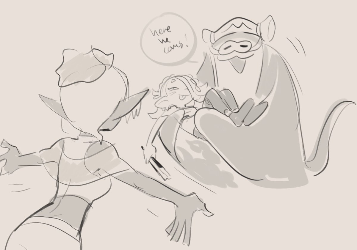 LRT I can’t read any of that but taller Frye is SO CUUTEE she’s so cool and pretty.. I also think it’d be funny if she picked up shiver like a cat by the scruff ??? Like this