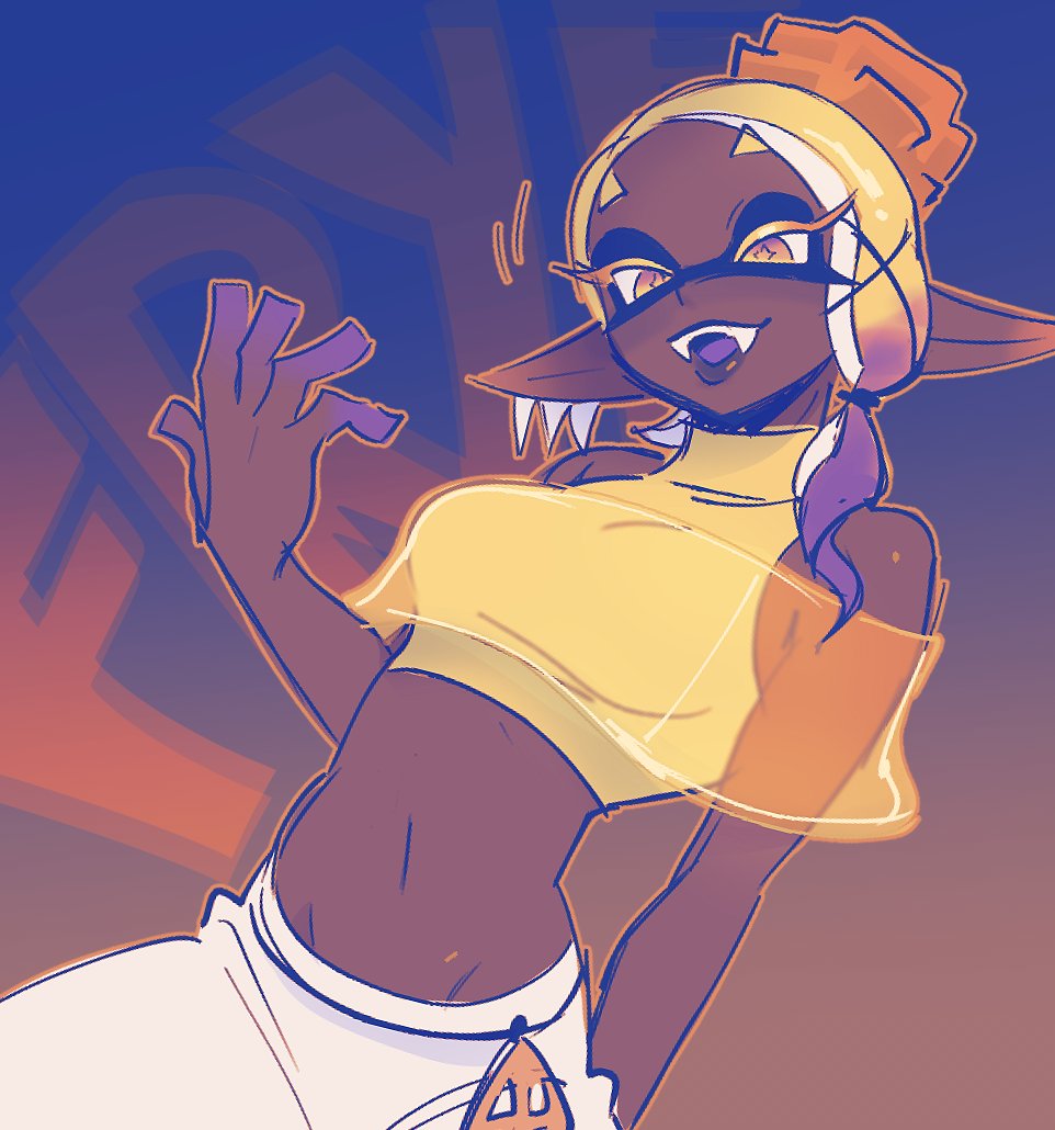 I wanna draw a cool splatoon-post so MUCH but i can't handle drawing on my switch, its so hard how do you guys do it????? here's a frye in a mock-post style for me to cope