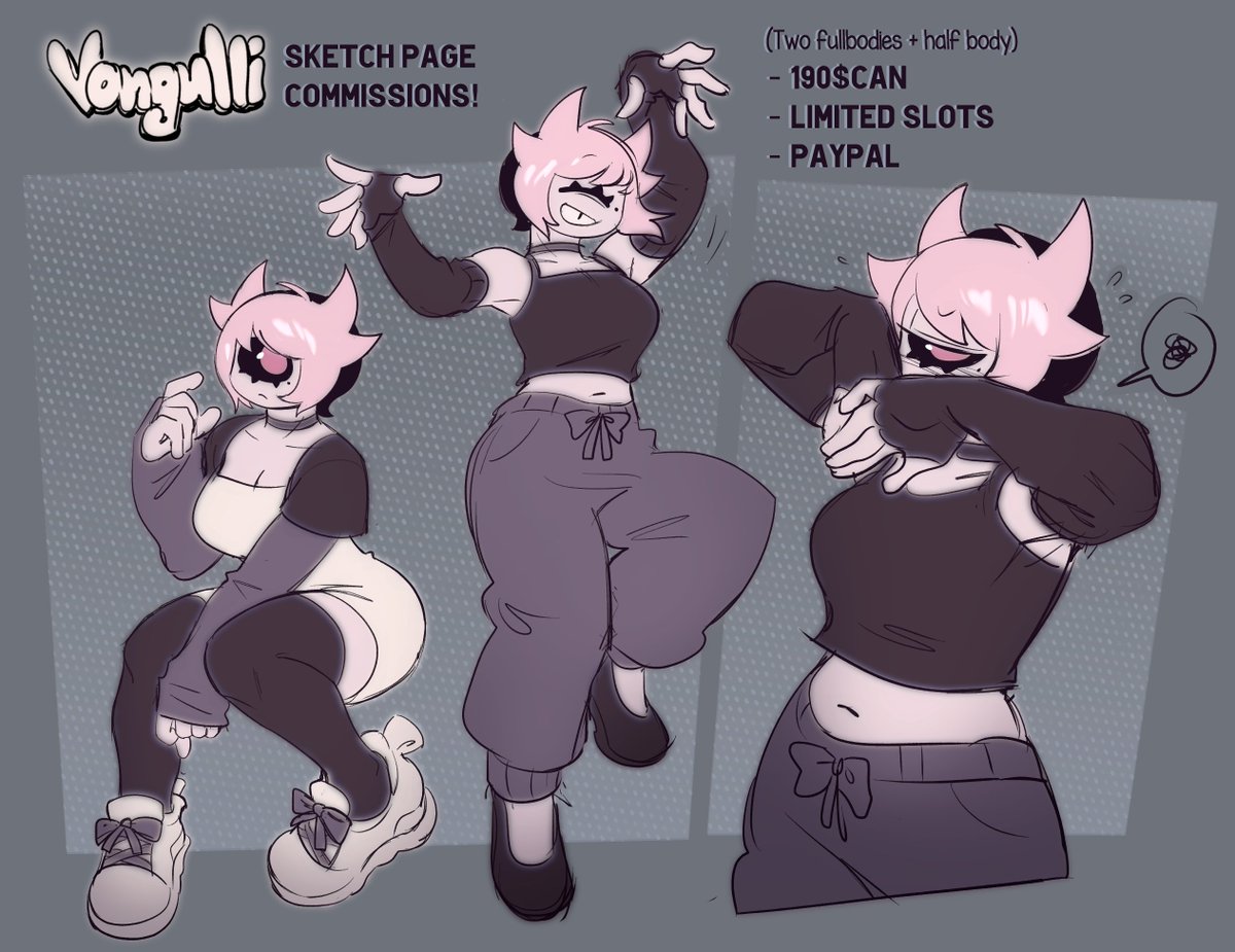 Been a long minute since i've opened some c0mms, but here they are! I wanted to do a sketchpage sorta thing, get a character drawn three times!! 💜💜💜 3 Slots open for this first batch, DM me to claim a slot!