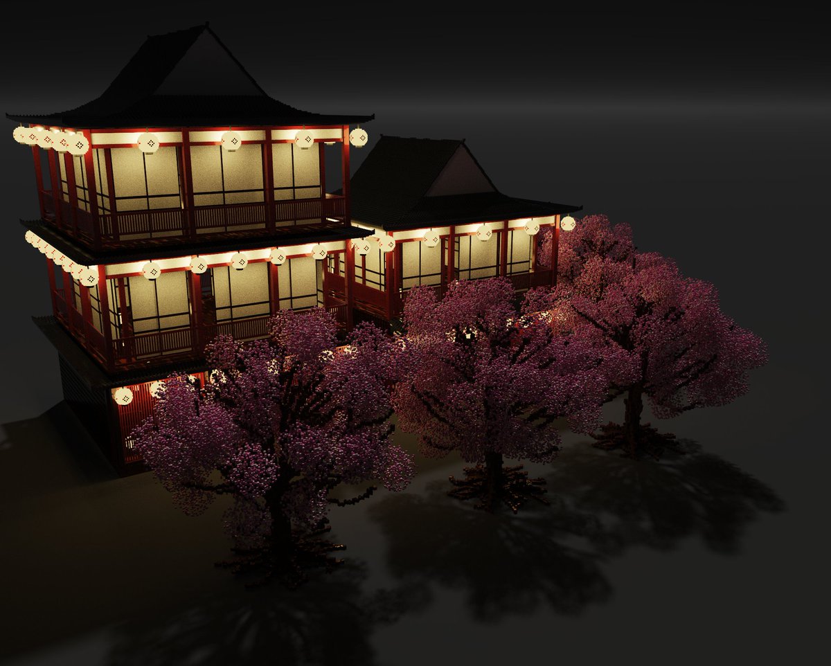 WIPYukaku (遊郭, red light district) in #Japan #voxelart #ドット絵 #magicavoxel #lowpoly #pixelart #Metaverse #pixelartist #voxelart #3dartwork #MetaverseGaming #Metaverses #NFT