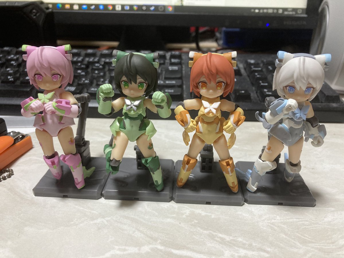 #デスクトップアーミー 我慢できずにサッと組み立てた子たち。 …か"わ"い"い"な"あ"ぁ"ぁ"。 デスクトップアーミーは、いいぞ。 特にこの子達は最低限のアーマーしか入ってないからすっっっごく簡単に作れる。入門にオススメ。