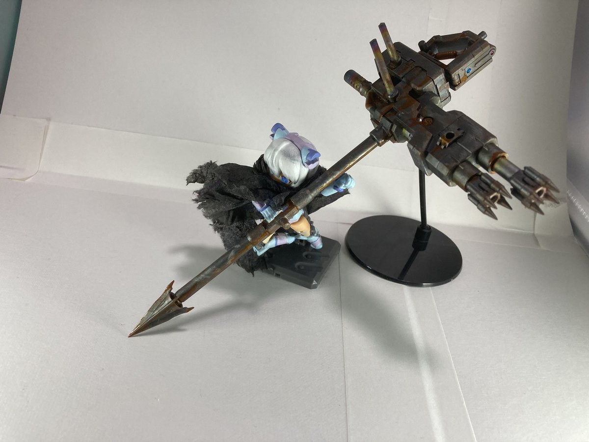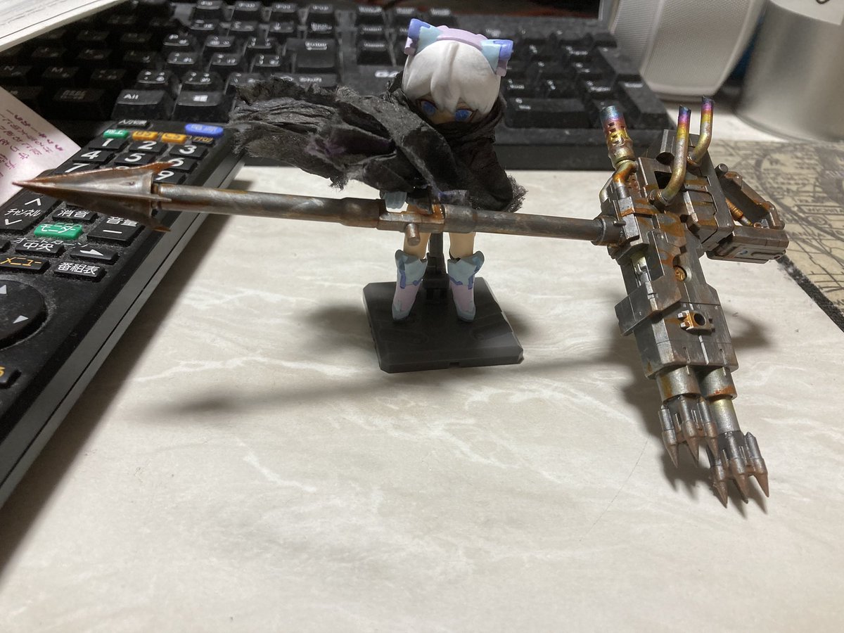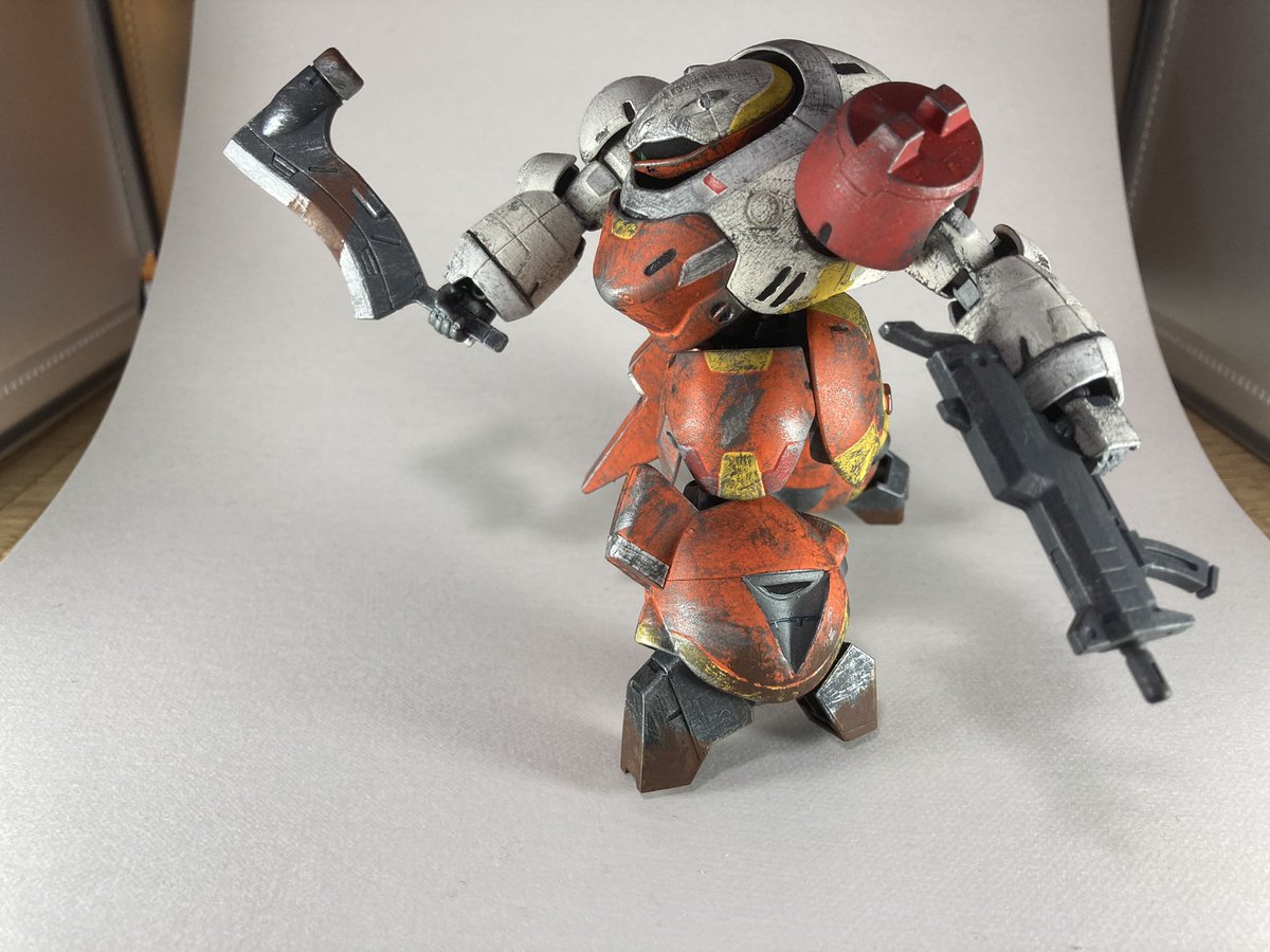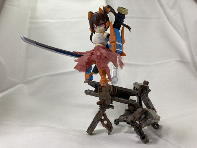 完成✨ 『朱羅・斬撃騎兵[斬姫]』 今回はそこまでガチガチではないっス。 いつものマント枠は袴になりました✨ ついでにサラシも作成。このへんの奴は元はティッシュ(キムワイプ)です。 帯を別の色にすればよかったなーと少し心残り。 ⬇️リプに追加と余計な設定⬇️ #デスクトップアーミー #プラモデル