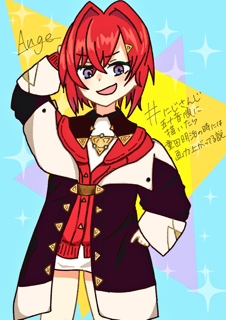 色々雑だけどとりあえず完成!(学校から帰ってすぐみたらし団子に飛びついているところに遭遇するシチュ←?????) #にじさんじ五十音順に描いたら童田明治の時には画力上がってる説 #アカネ色の世界