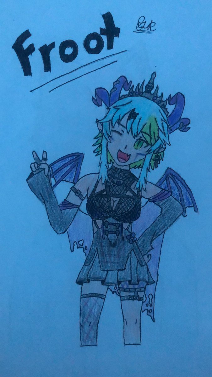 A doodle of froot with the wingman :3, with a glow in the dark version👀🌹 @LichVtuber #lichcraft