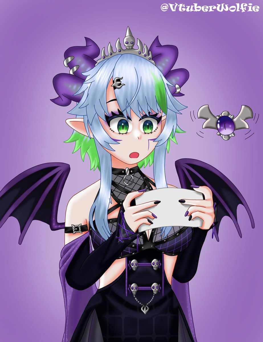 The All Powerful Lich Queen @LichVtuber in all of her glory!! Tremble before her!! >:3 💚💜#Lichcraft #VSHOJOART