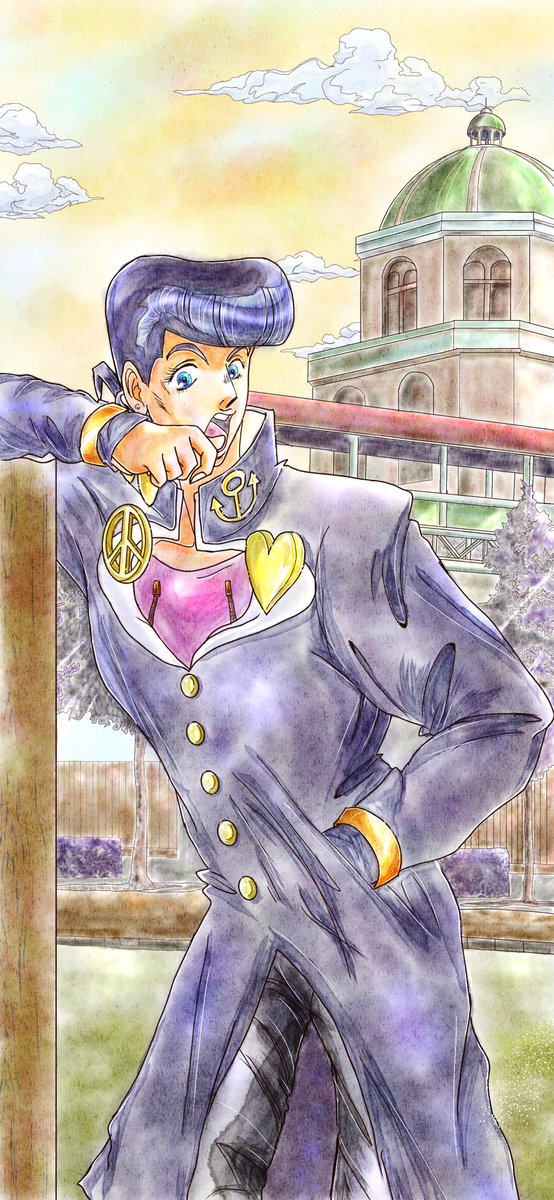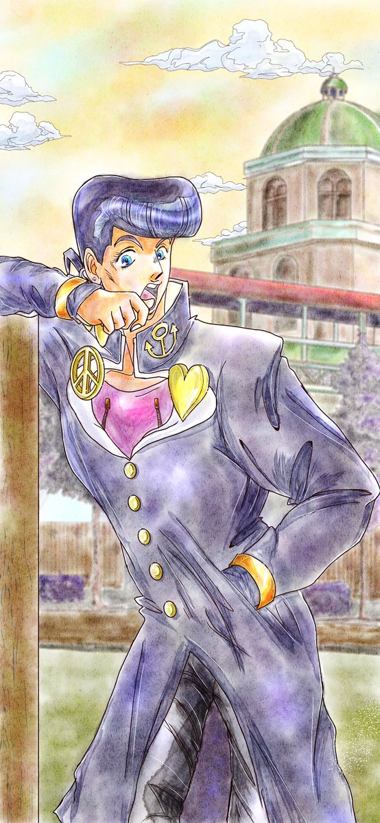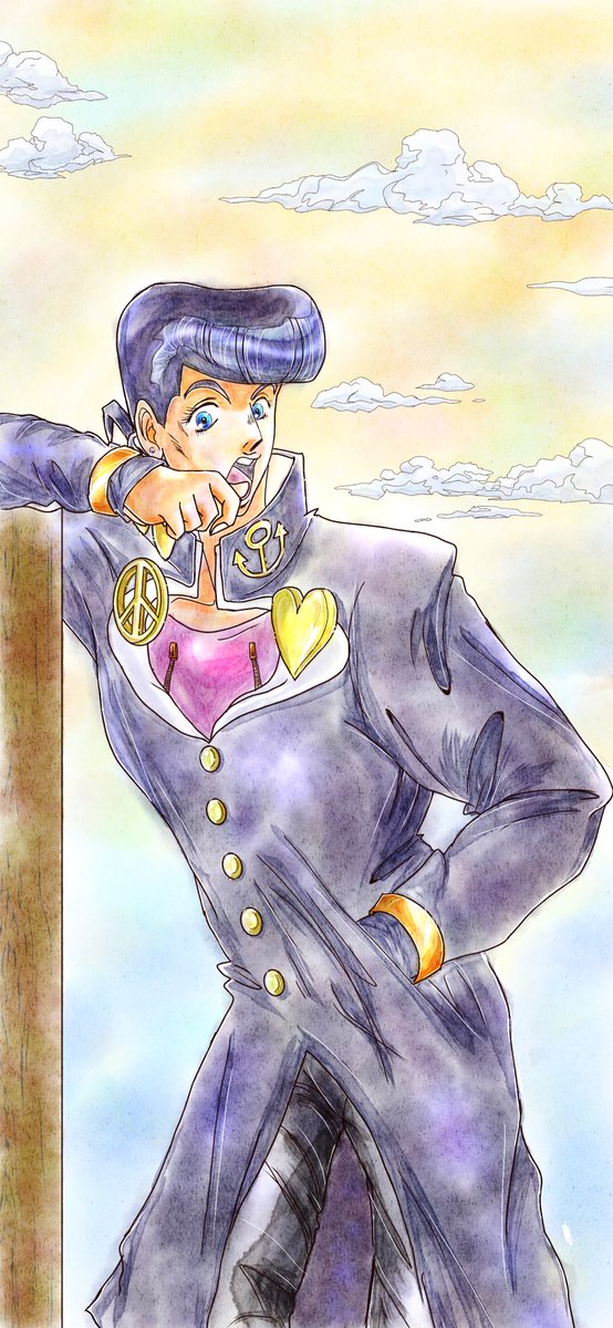 塗り方って色々あって難しいけど、楽しく描きながら慣れていけたらいいかという気持ちの⑦個目の下書きです。#絵描きさんと繋がりたい #イラスト #アイビスペイント #ジョジョ #ジョジョ好きさんと繋がりたい #東方仗助
