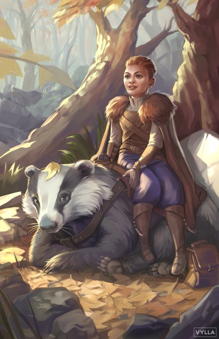 Finished this commission! They are their DND PC Cass and giant badger companion Bramble. 🦡❤️