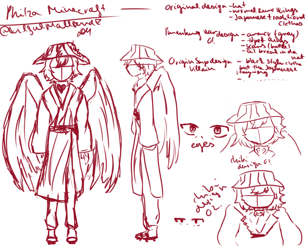 My C!TommyInnit character design Headcanons: -has red wings (smaller than Phil's wings) and his wings bottom is black (bcs Phil has black wings) -has a new sweater (-red) -He has a tiny ponytail -He kept the "your Tubbo" compass #sketch #tommyinnitfanart #dsmpfanart