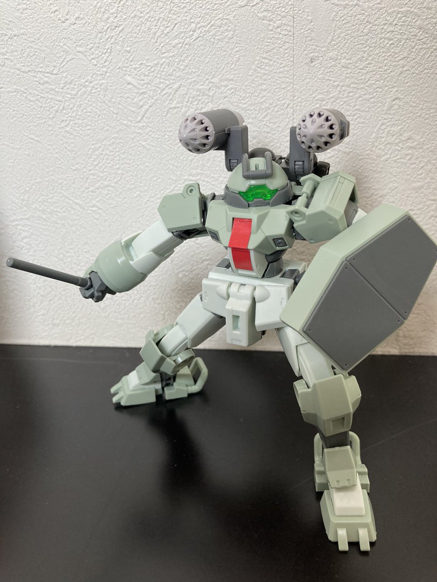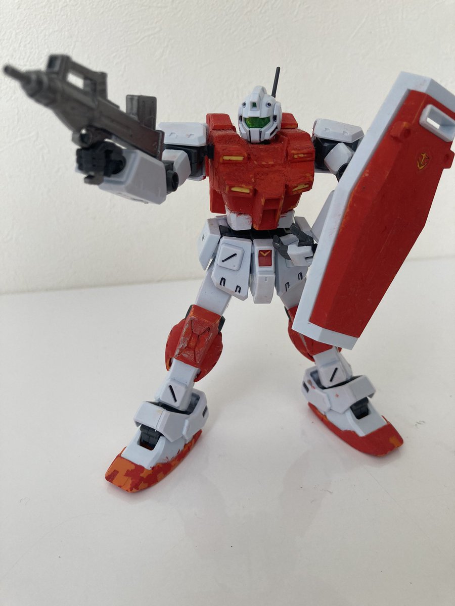 おはようございます! 今日はパワードジムです。 昔、小学校のアクリル絵の具で塗ったので塗装が剥げまくってますw #ガンプラの画像を貼るとRTされると聞いて
