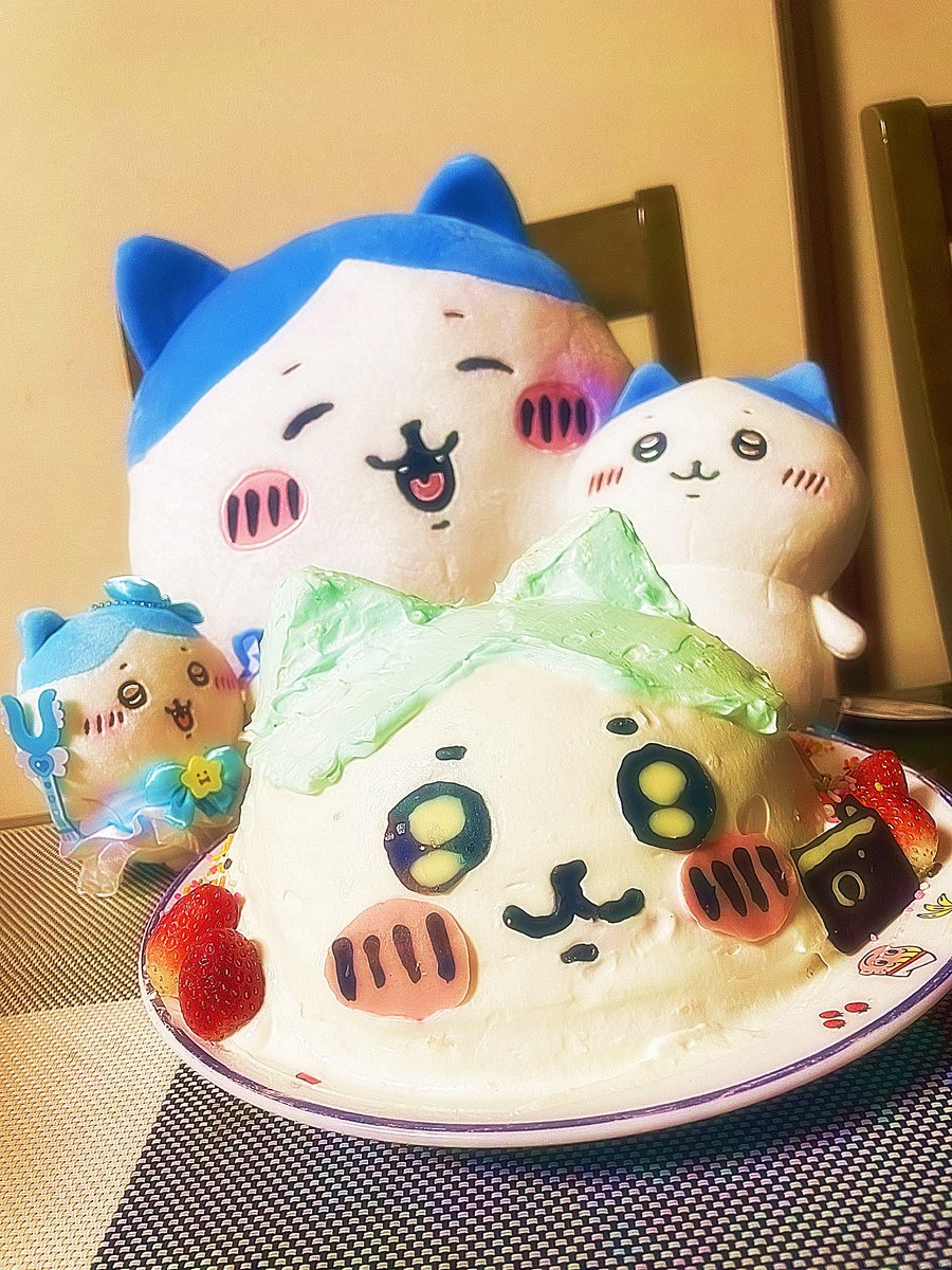 #ちいかわ #ちいかわファンアート #ハチワレ 今日誕生日なので大好きなハチワレちゃんのドームケーキ作りました!!!形は歪でも愛はある!!!!!