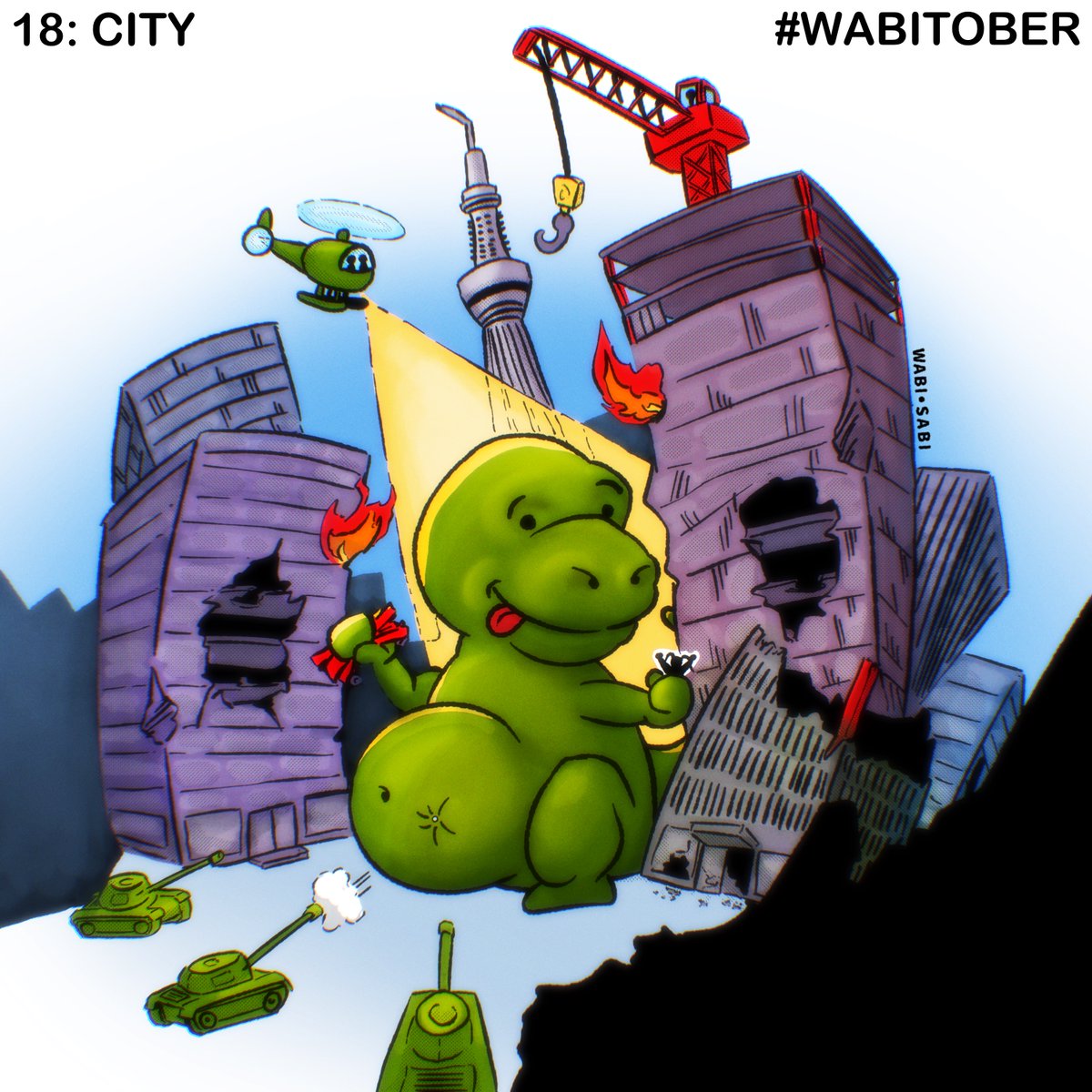 #wabitober day 18: CITY A nice little change of pace after knife guy yesterday. #inktober #inktober2022 #drawtober #art #artist #drawing #digitalart #procreate #procreateart #デジタルイラスト #illustration #dailyart #artoftheday #cartoon #godzilla #ゴジラ