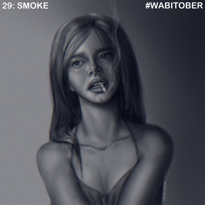 #wabitober day 29: SMOKE Something clicked in my brain yesterday. #inktober #inktober2022 #drawtober #art #artist #drawing #digitalart #procreate #procreateart #デジタルイラスト #portrait #blackandwhite #painting #digitalpainting @Procreate