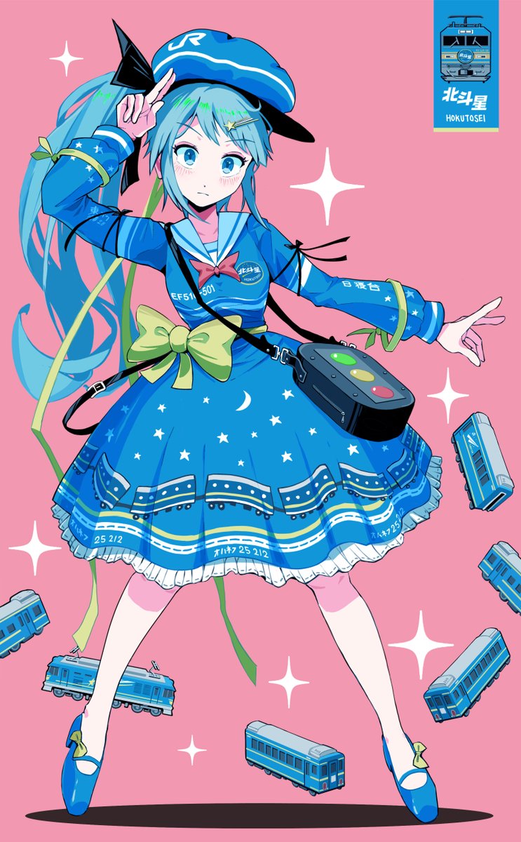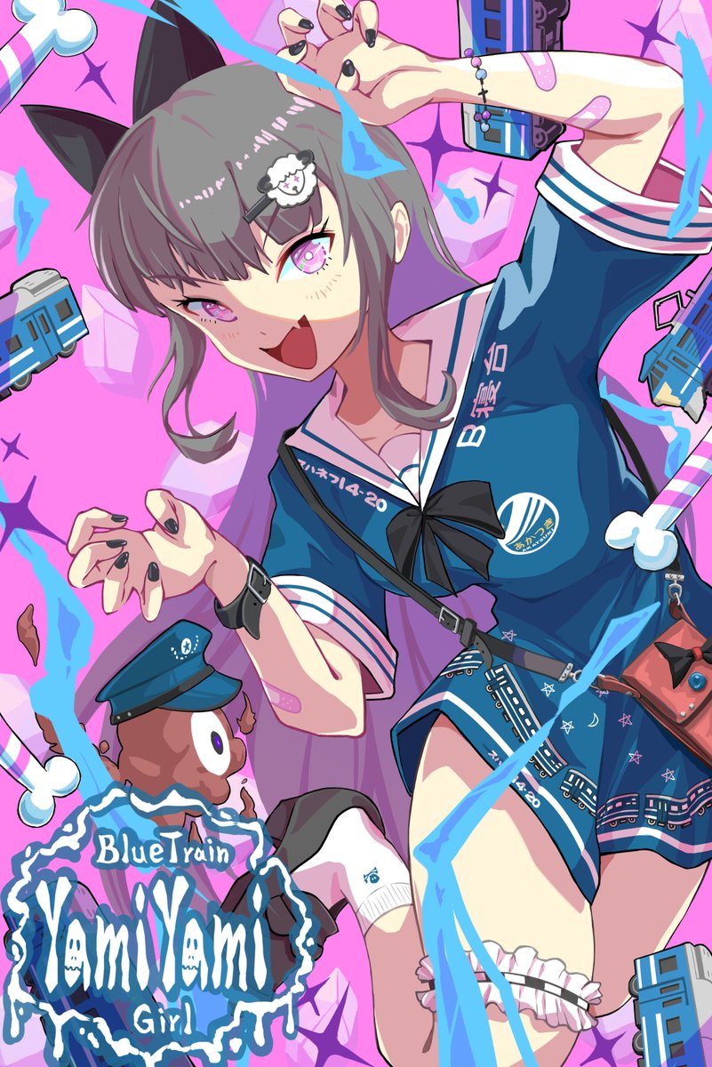 テーマを決めて創作絵を連作しています。 今回のテーマは鉄道です🚋 『ブルートレイン柄のセーラーワンピ&やみやみガール』 #冬の創作クラスタフォロー祭り #絵柄好みって人にフォローされたい #絵描きさんと繫がりたい