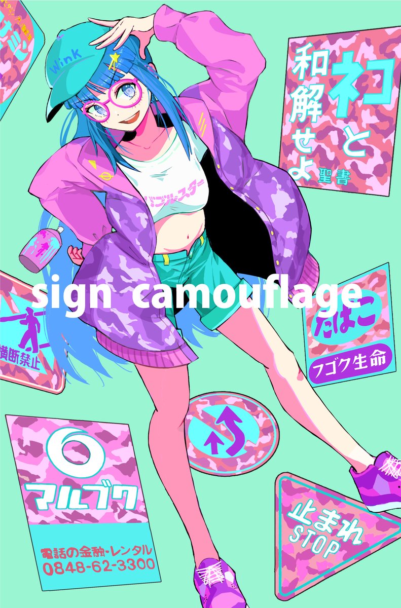 創作絵です。「迷彩」がテーマ😀 街中にある看板や標識をカモフラ塗装してしまう女の子です⛔️🚸 #イラスト #GWはフォロワーさんが増えるらしい #絵描きさんと繋がりたい #イラスト好きな人と繋がりたい #GW創作クラスタフォロー祭り