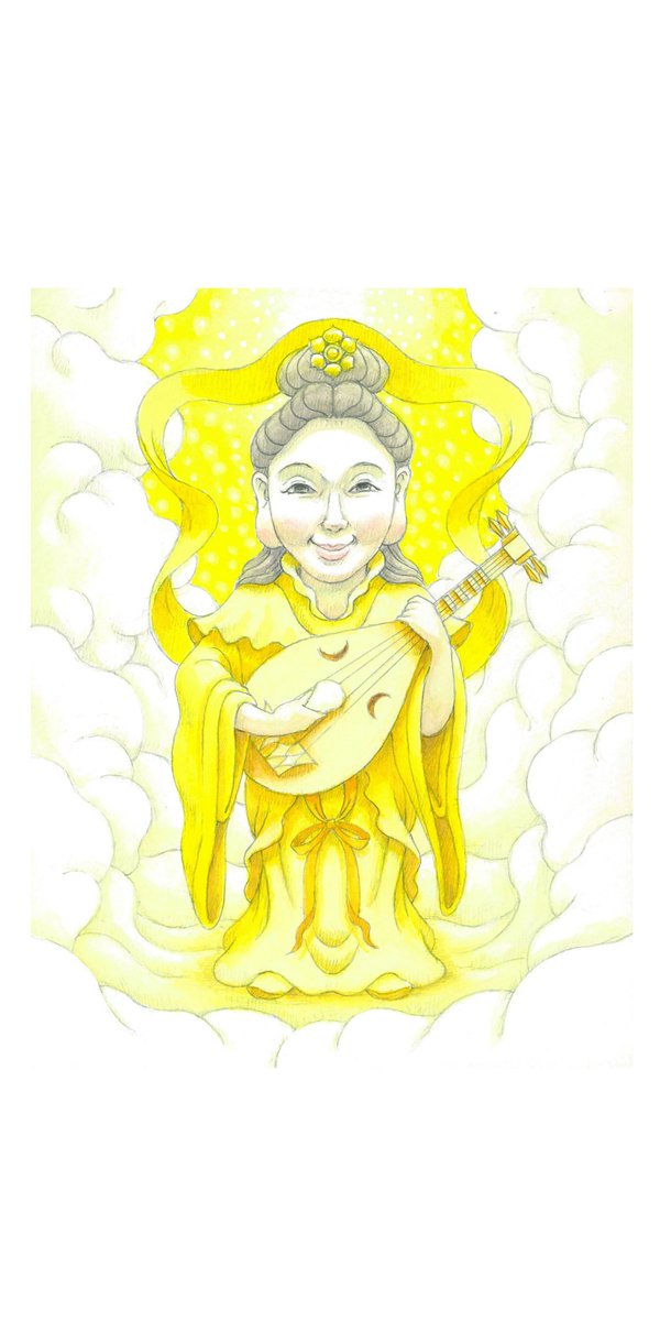 こんにちは✨ WANOEです☆ 弁財天 様 (水彩画) F 0号 画用紙・鉛筆・不透明水彩 2022 世界に 等しく 豊かさと幸せを✨ ね✨神様✨🔔 #絵描きさんと繋がりたい #弁財天様 #水彩画 #イラスト #日本画 #artwork #watercolorpainting #アート好きな人と繋がりたい #イラスト好きな人と繋がりたい