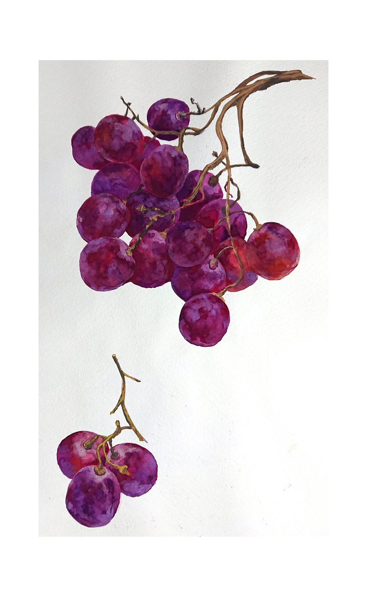こんにちは✨ WANOEです☆ 葡萄 (水彩画) 画用紙・不透明水彩絵具 2014頃 柏餅食べたい(絵と関係ないですが(笑)) #絵描きさんと繋がりたい #イラストレーターさんと繋がりたい #葡萄 #水彩画 #イラスト