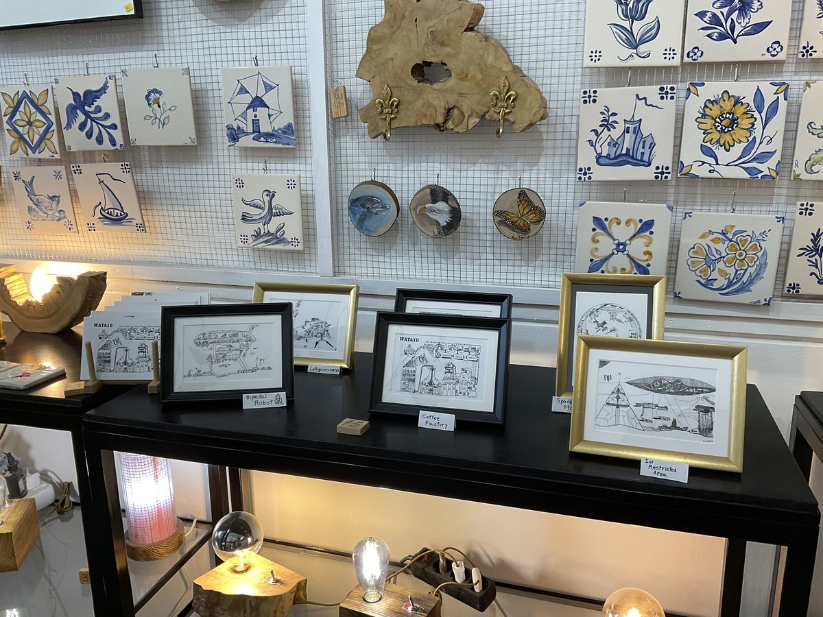 本日、LISBON LX FACTORY Loja1.08で販売させて頂いている私の絵などにタイトルをつける作業をしました! これらのタイトルをヒントに、もっと絵への没入する手助けになれたら幸いです。 コップも売ってます! #qimhandicraft #LXFactory #Lisbon #Portugal #イラスト #WATA10