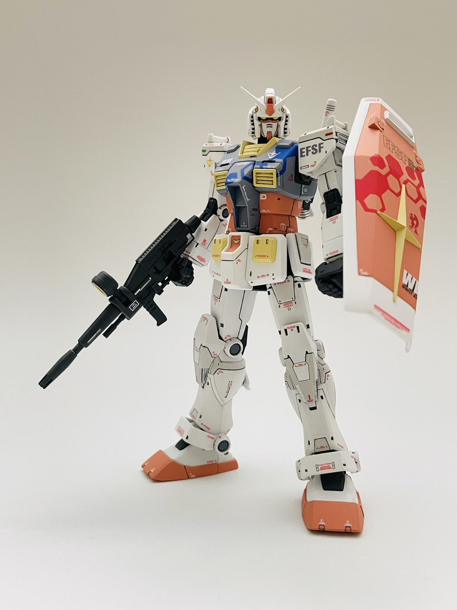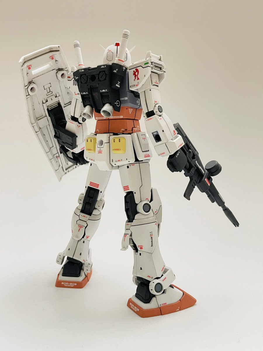 HG 1/144 ガンダム(THE ORIGIN版) 基本セイラマスオカラーで塗装。手軽にこの色が出せるのはありがたいですね。 ハイキューパーツの迷彩マスキングシートも便利! #ガンプラ #ガンプラの画像貼るとRTされると聞いて