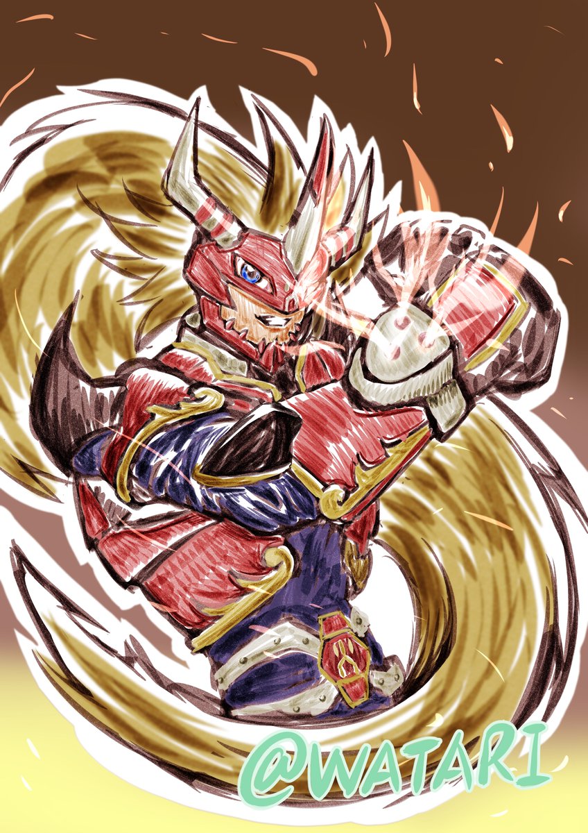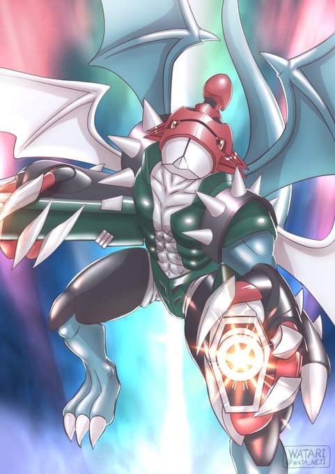 @kira_dra_h様の企画本『ACCOLADE』に寄稿した、ジエスモンGXのイラストになります。本日より、公開解禁となりました✨ 『The ″S″ of Glaring eXaltation』 (タップ推奨) 制作秘話は、リプ欄にて。 #ロイヤルナイツアンソロ #デジモン #Digimon