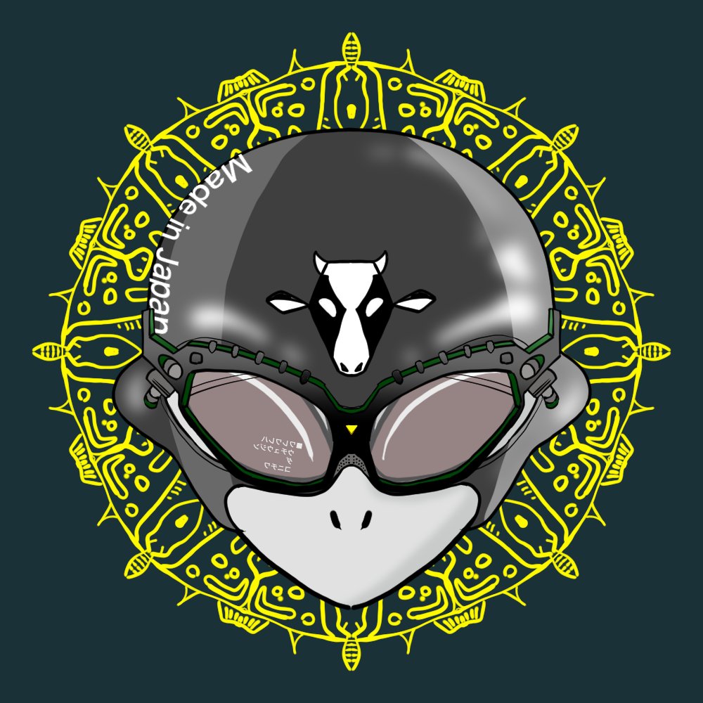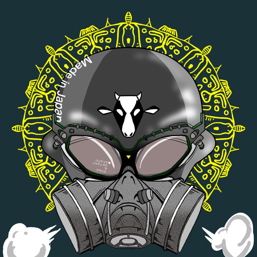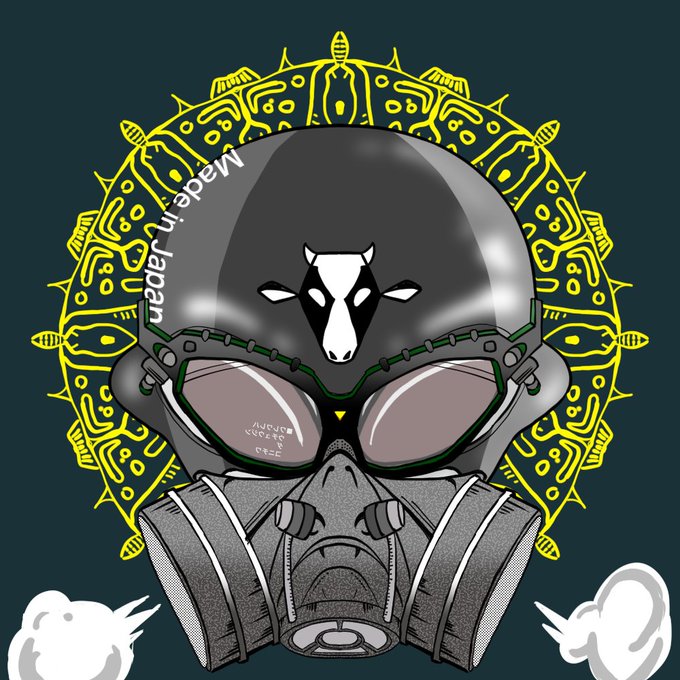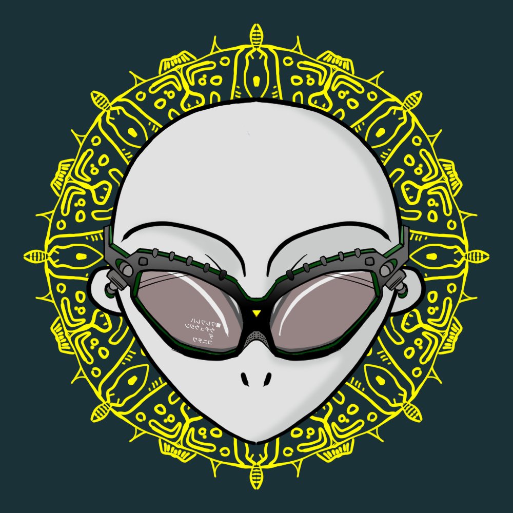 👽に メガネと、マスクと、ガスマスクを付けたよ 気合入れたzuうぇいっ♪ 🐄🐄🐄 このあたりのイラストは NFTのプレゼントとか、どーすか。 #絵描きさんと繋がりたい #イラスト好きさんと繋がりたい