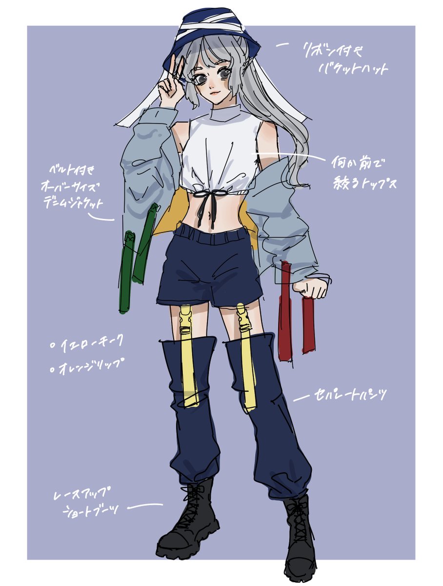 #深夜の真剣お絵描き60分一本勝負 布都ちゃんのストリート系衣装アレンジの案を考えました❤️🔥